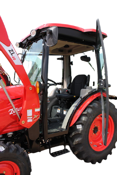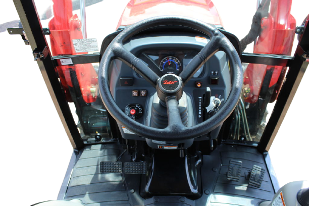 The Zetor M40HTC Compact Series features a sliding adjustable drawbar, toolbox, and hi-back adjustable seat with seatbelt standard. A/C, heater, windshield forced air to defrost, AM/FM Stereo with iPod port, USB port, and remote-control Kenwood Stereo is standard equipment in the M40HTC tractor. Other Cab features include: L/R locking doors and rear window, F/R wipers with washer tank, dome light, 12V outlet, cell phone, and beverage compartments.
