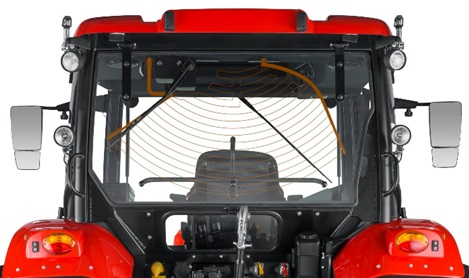 All P-Series Cab tractors include multiple sources of 12V implement power supply, F/R wipers and cab lights. On the PS series, rear window is heated.