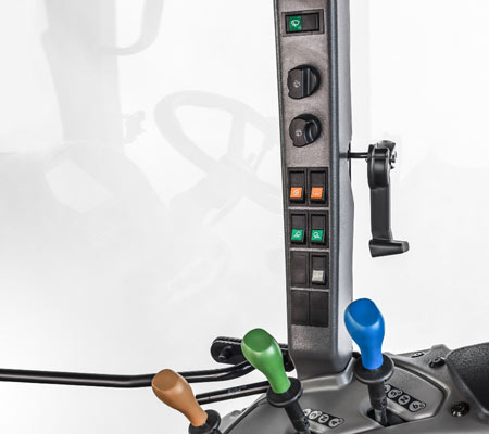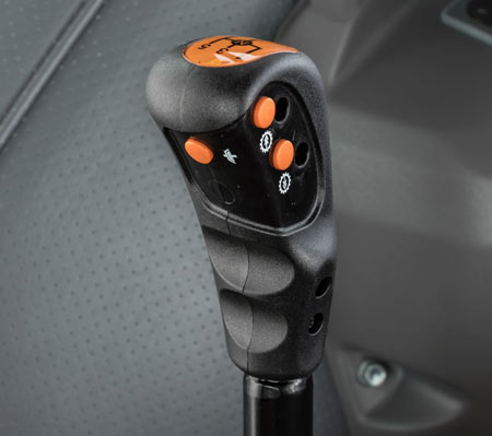 The Power Shuttle Reverser control lever on the PS series is mounted to the steering column on the left side of dash.