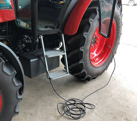 The practical standard on-board compressor, unique traditional Zetor feature and included tire hose can fill any tire with air.