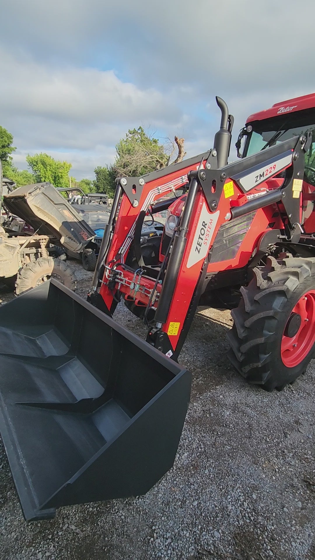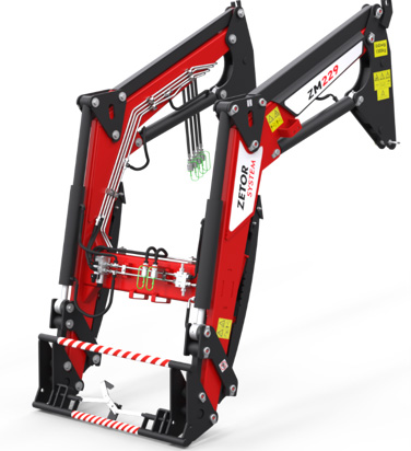 All P series tractors come factory equipped with three rear valve bank with 4-way functions. The remote valves also feature pressurized kickout when the cylinder stroke ends. The PS Series can be ordered with four-spool valve bank as an option. The SS series comes with total of 9 front and rear lights; The PS series has 12 lights. Left and or L/R rotating beacons are available as an option. The practical standard on-board compressor, unique traditional Zetor feature and included tire hose can fill any tire with air. The matching Zetor System 229 front loader is massive and well equipped: Full length subframe Standard self-leveling Standard third function Euro or skid-steer style tool carrier Proxima Spec Sheet